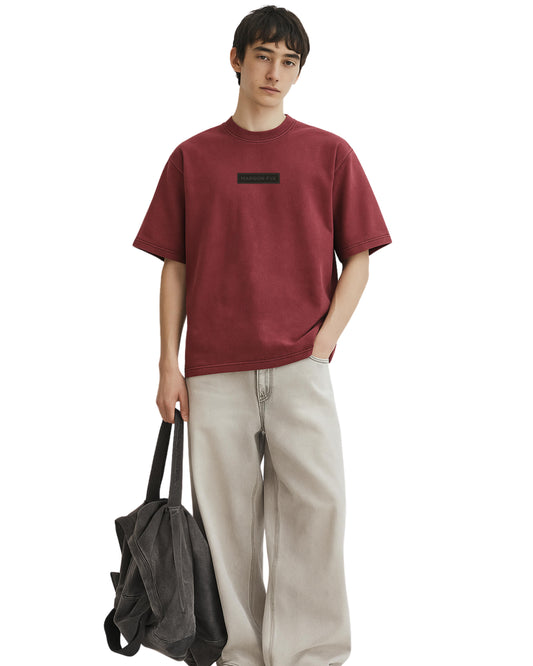 MAROON ACID WASHED T-SHIRT
